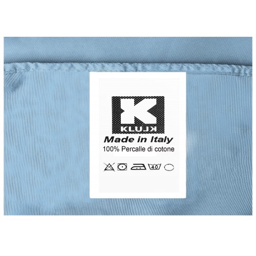 - KLULK Parure Copripiumino Percalle Singolo Celeste Polvere, Sacco 155 X 205 + 80 Cm, 1 Federa 52 X 82 cm, Made In Italy