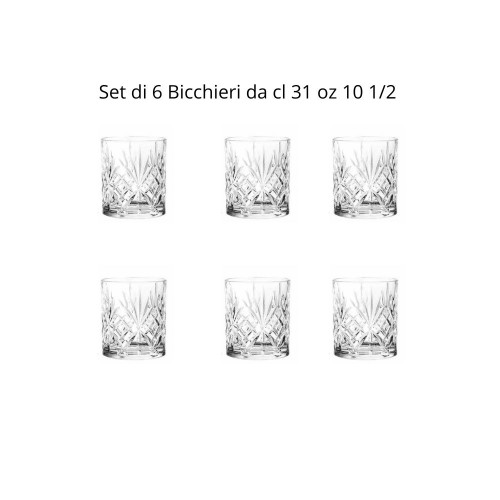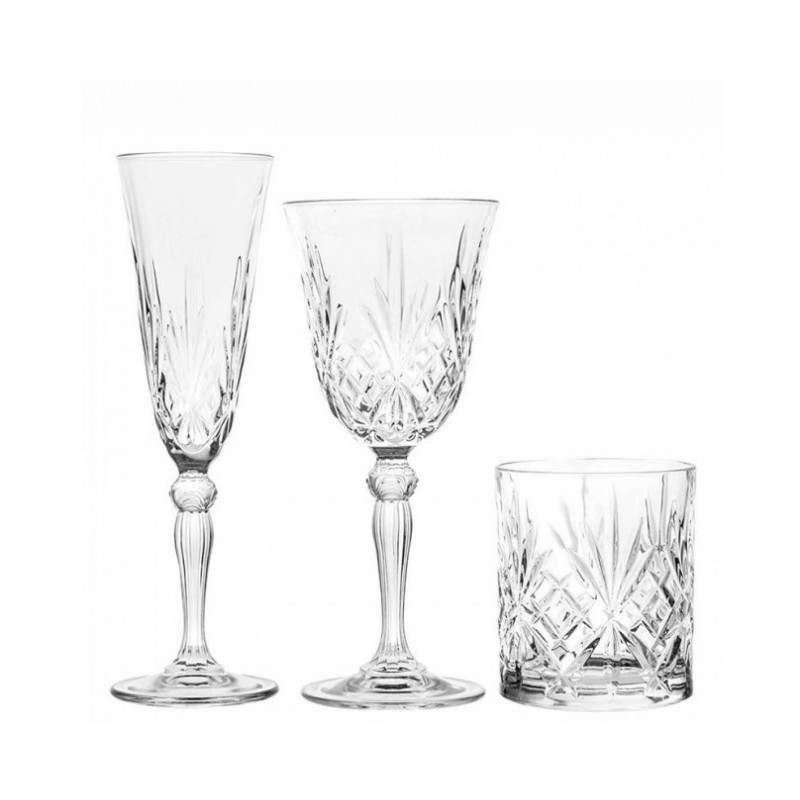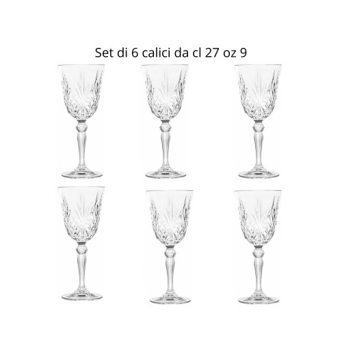 Il set è Composto da 18 Bicchieri : 6 Calici per acqua, 6 Calici per Vino, 6 Calici per Flûte
