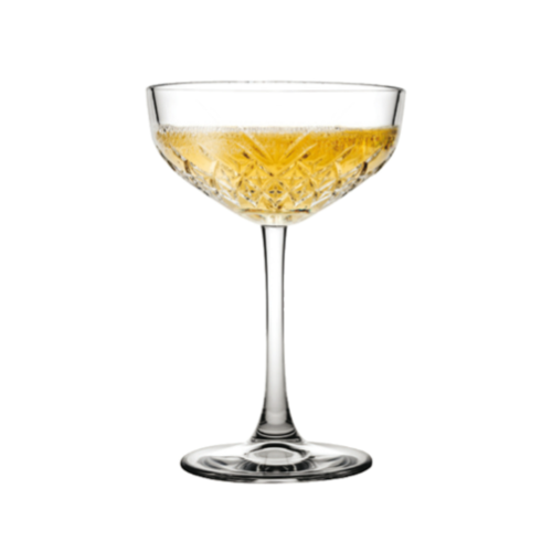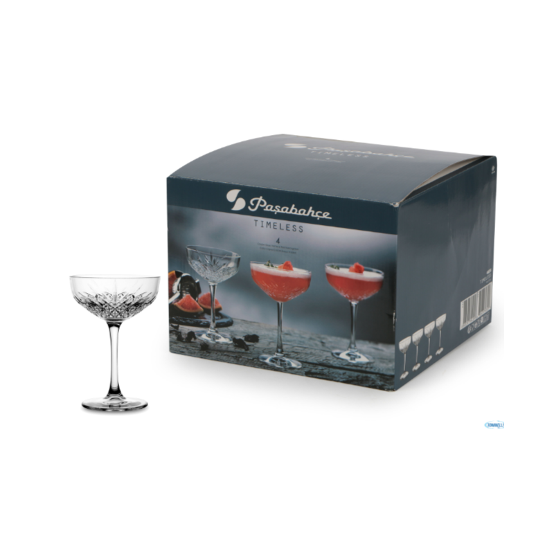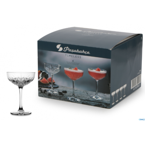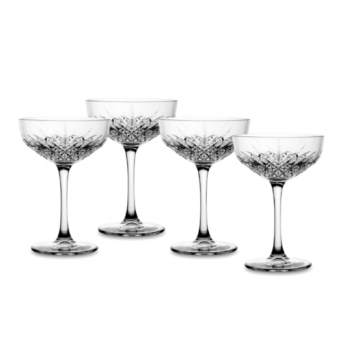 - Set 4 Coppe Champagne Serie Timeless in Vetro Trasparente Con Decoro Geometrico 27 cl