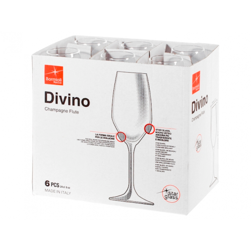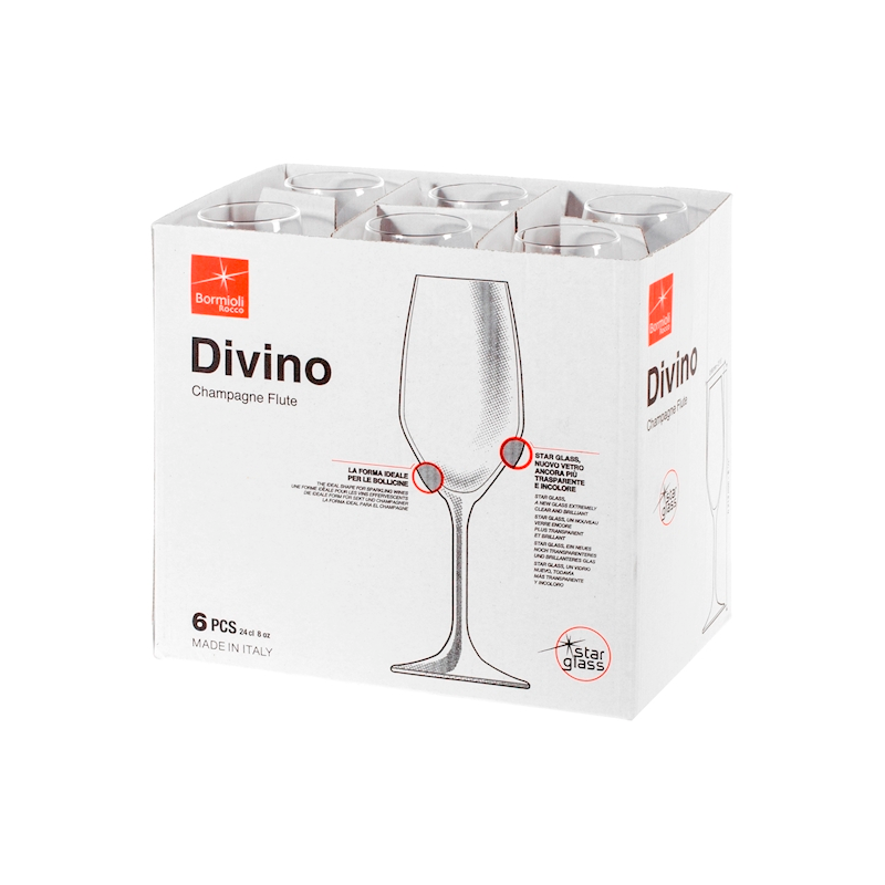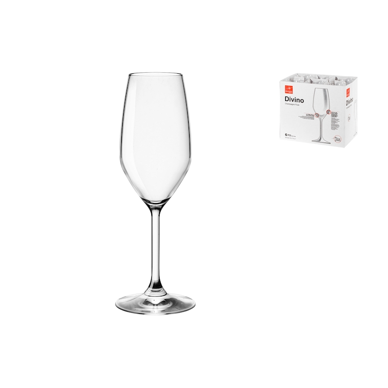 Set 6 Calici Spumante Linea Divino Flute 24 Cl In Vetro Trasparente