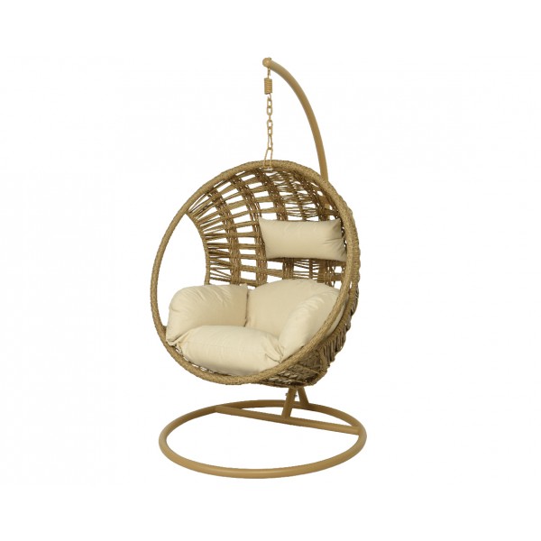 KLULK Poltrona Sospesa Da Esterno Paros Con Struttura In Acciaio Beige E Guscio In Poli-Vimini, D. 95 x H 195 Cm, Regolabile