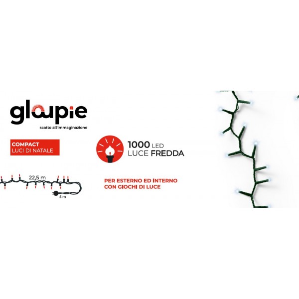 GLOUPIE Luci Di Natale Da 27,5 MT Con 1000 Led Bianco Freedo, Cavo Verde, Distanza Luci 2,2 Cm, Funzione Memoria e Timer