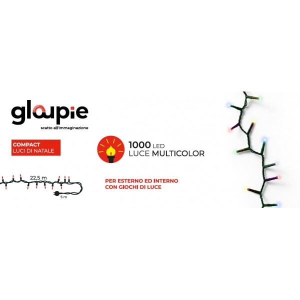 GLOUPIE Luci Di Natale Da 27,5 MT Con 1000 Led Multicolore, Cavo Verde, Distanza Luci 2,2 Cm, Funzione Memoria e Timer