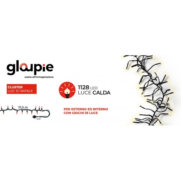 GLOUPIE Luci Di Natale Cluster da 15,5 MT con 1128 led bianco Caldo,Cavo Verde, Funzione Memoria e TIMER