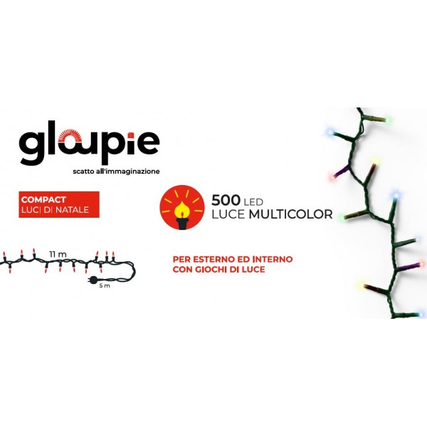 GLOUPIE Luci Di Natale Compact da 16 MT Con 500 led Bianco Freddo, Cavo Verde, Distanza Luci 2.2 Cm, Funzione Memoria e Timer