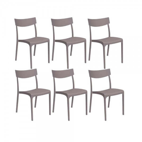 Gloupie Set 6 Sedie Provence in Polipropilene Taupe, Impinabili,46 x 54 x 80 cm, peso 3,3 kg, Design Vintage, 100% Made in italy