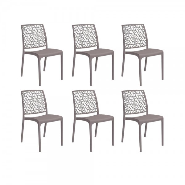 Gloupie Set 6 Sedie Ninfa in Polipropilene Taupe,Impinabili, 46x54x80 cm, peso 3,3 kg,Schienale a Forma di Ninfee,Made in italy