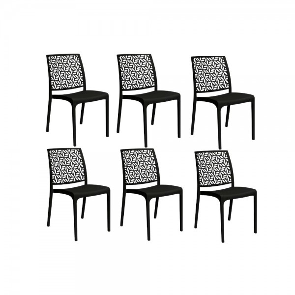 Gloupie Set 6 Sedie Ninfa in Polipropilene Antracite,Impinabili,46x54x80cm,peso3,3 kg,Schienale a Forma di Ninfee,Made in italy