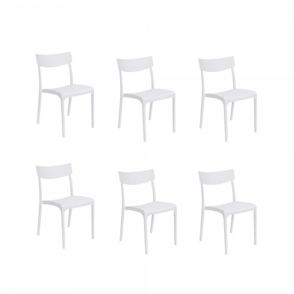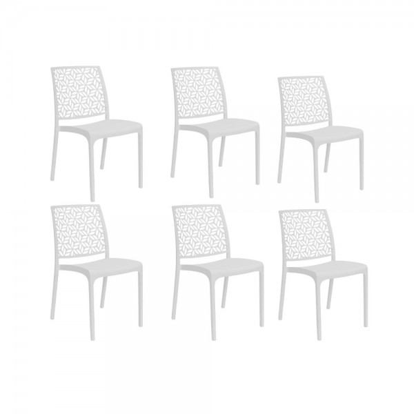 Gloupie Set 6 Sedie Provence in Polipropilene Bianca, Impinabili,46x54x80 cm, peso 3,3 kg, Design Vintage, 100% Made in italy
