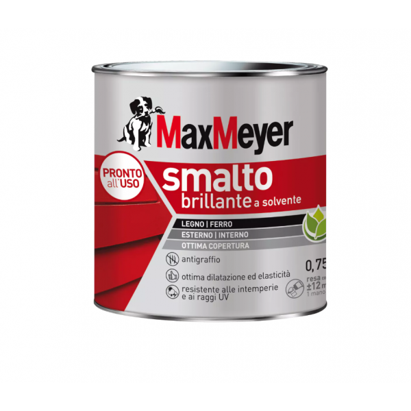 Smalto Brillante A Solvente Bianco Resistente Alle Intemperie, Abrasioni E Raggi UV Per Uso Interno Ed Esterno 0,75 Lt