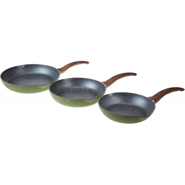 Set 3 Padelle 20 cm /24 cm / 28 cm Della Linia Jungle in Alluminio, Verde