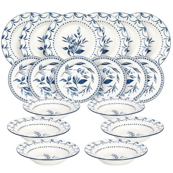 Servizio Piatti 18 Pezzi in Porcellana – Olimpia Blue Loira, Colore Blu