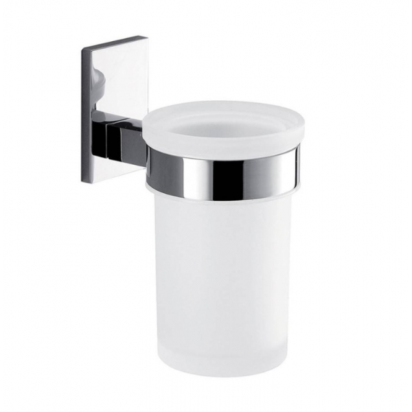 Portaspazzolini A Muro In Acciaio Inox Cromato E Vetro Linea Maine Con Fissaggio Tramite Bioadesivo