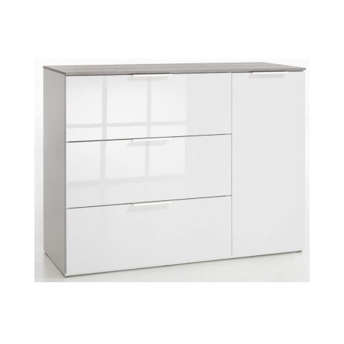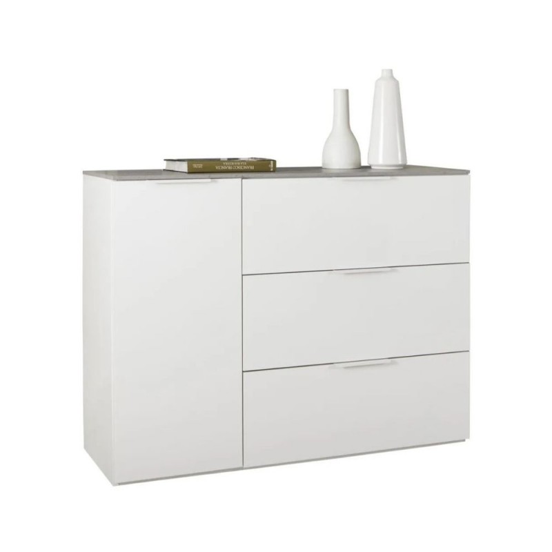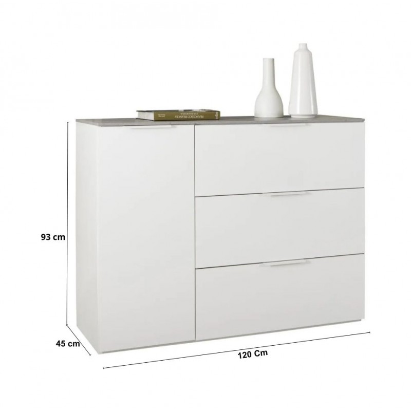 Mobile Contenitore ingresso bianco e cemento linea Galaverna con un 1 anta e 3 cassetti Made in Italy
