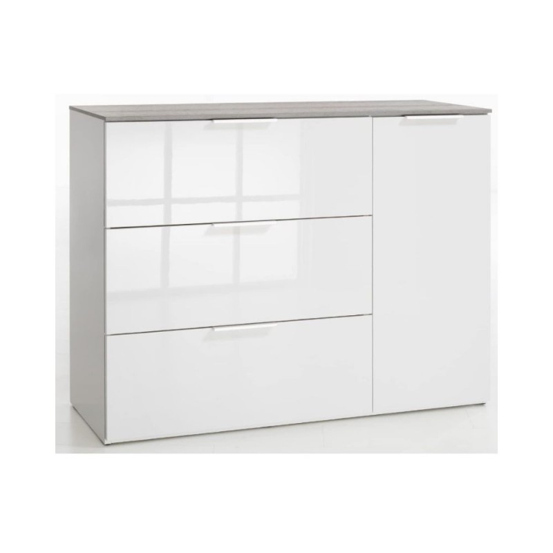 - Mobile Contenitore ingresso bianco e cemento linea Galaverna con un 1 anta e 3 cassetti Made in Italy