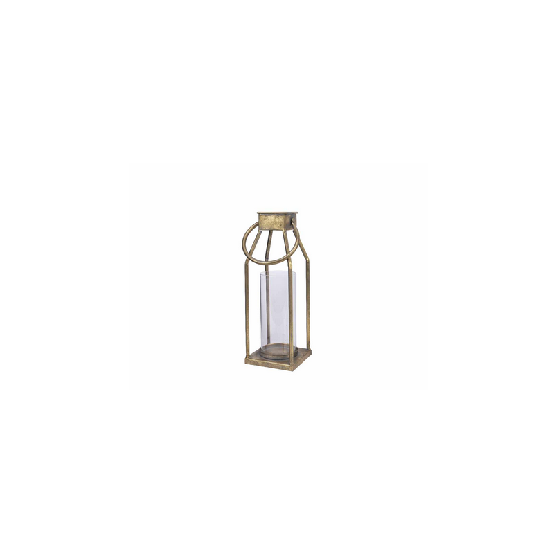 Bella, elegante e allo stesso tempo estremamente semplice e minimalista lanterna in metallo, oro invecchiato. All'interno c'è un candeliere di vetro, quindi la candela accesa all'interno è sicura e non si spegnerà accidentalmente.
