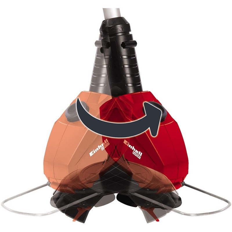 il tagliaerba a filo a batteria ge-ct 18 li solo è un apparecchio potente che offre un manto erboso curato anche nei punti difficilmente raggiungibili. con il sistema di batteria power x-change di einhell, il tagliaerba è dotato di una batteria da 18 v 1,5 ah per interventi di lavoro di lunga durata senza la necessità di corrente elettrica. l'indicatore di carica batteria con tre led permette di verificare lo stato di carica attuale. l'impugnatura di guida telescopica regolabile in continuo può adattarsi a qualsiasi statura e consente una presa confortevole. grazie alla presa antiscivolo softgrip, all'impugnatura secondaria regolabile in continuo con vano per 20 lame e alla testa motore orientabile in cinque posizioni e girevole di +/- 90°, situazioni di lavoro gravose come superfici verticali o bordi del tappeto erboso possono essere lavorati in modo confortevole.