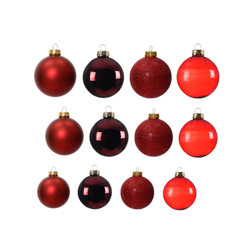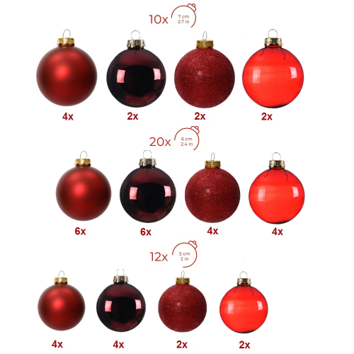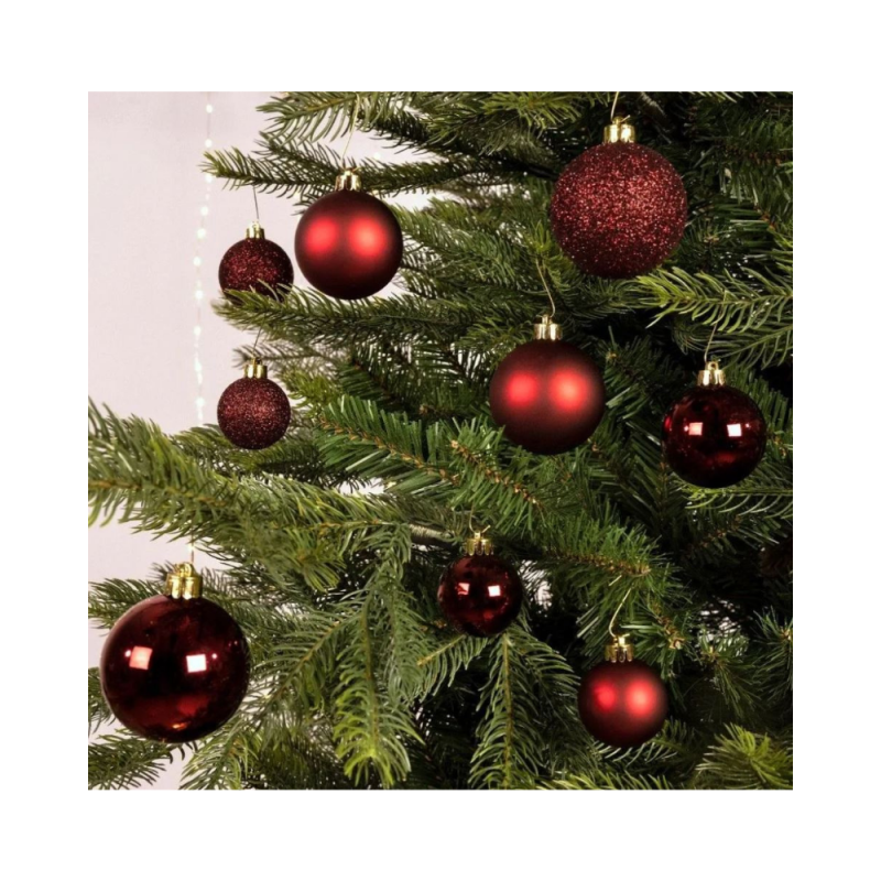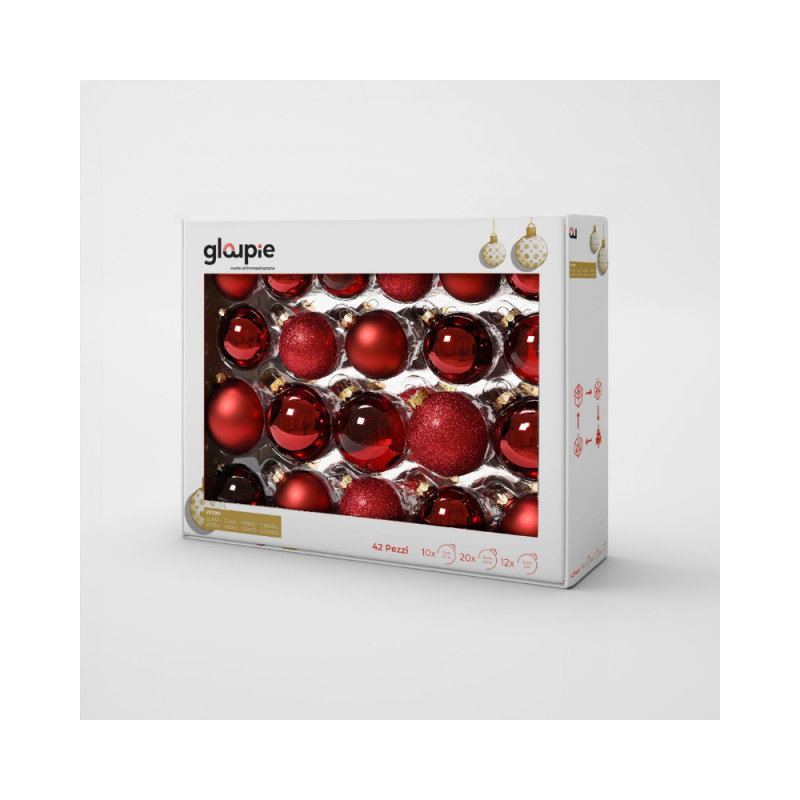 - GLOUPIE Box 42 Palline Per Albero Di Natale In Vetro Resistente Bordeaux, 3 Misure Ø 7, 6, 5 cm, In Diverse Finiture Color Rosso