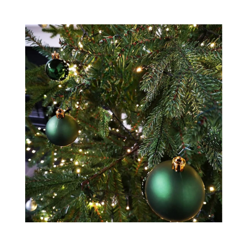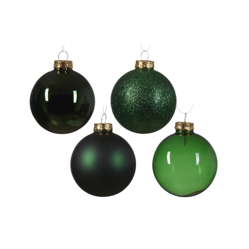GLOUPIE Box Da 42 Palline Per Albero Di Natale In Vetro Resistente Dalla Splendida Colorazione Elegante E Raffinata Verde, Suddivise In 3 Misure Aventi Diametro E Circonferenza Pari A Ø 7, 6, 5 cm, Ideali Per Decorare Qualsiasi Albero Natalizio Piccolo O Grande Nel Migliore Dei Modi. Palle Dalla Finitura Lucida, Trasparente, Opaca Matt E Glitterata