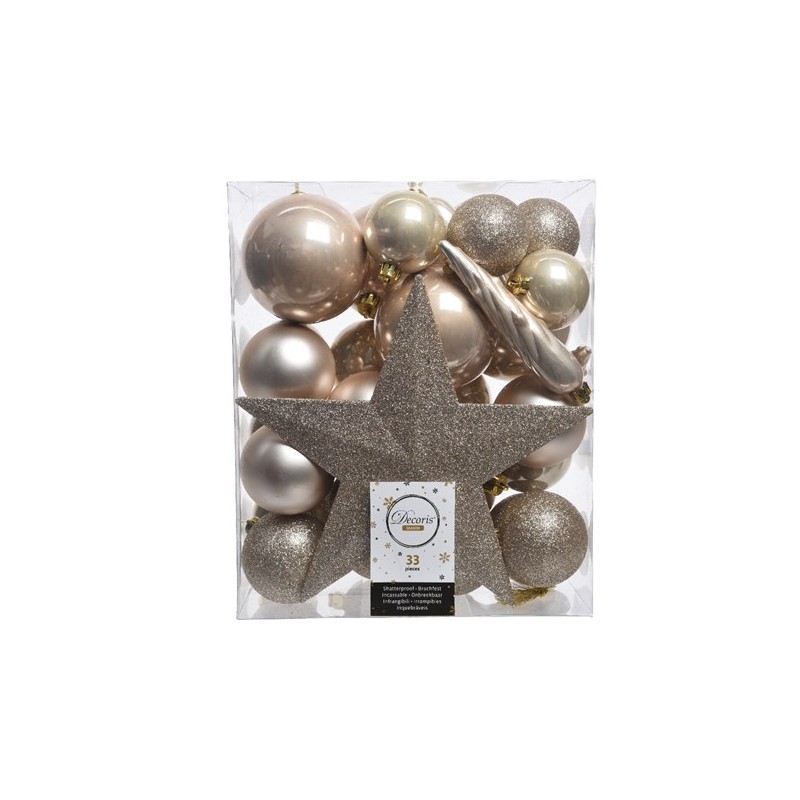 confezione: 33 palline in mix glitterate, opache e lucide