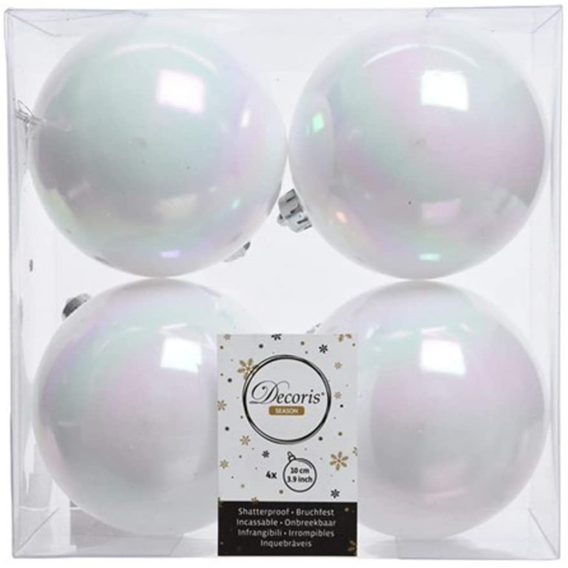 con le palline di natale color bianco iridiscente opaco/lucido puoi rendere unico il tuo albero, letue decorazioni natalizie, i festoni e le ghirlande. rendi incantevoli i tuoi addobbi natalizi con queste sfere colorate. il set è composto da 4 palline in materiale plastico infrangibile.