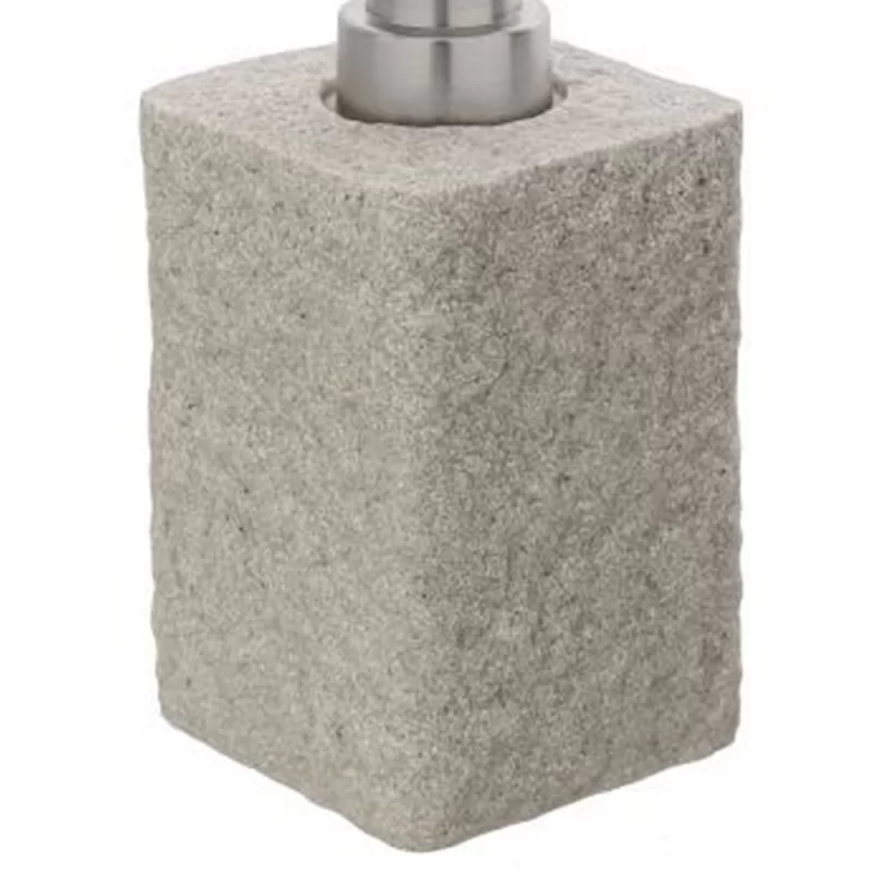 Dispenser sapone liquido da bagno serie d'appoggio in resina beige effetto pietra.