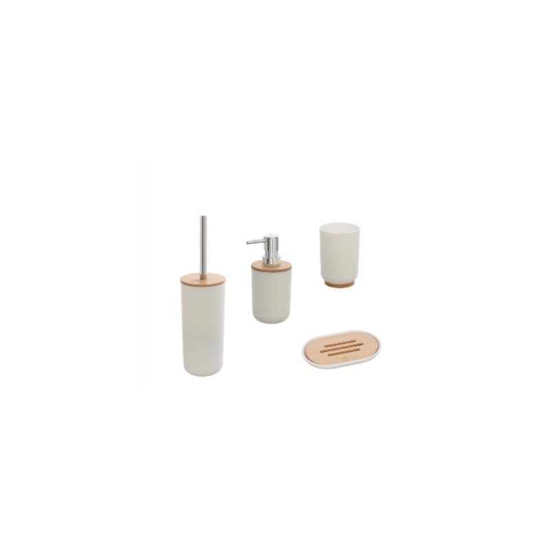 Linea florida: dispenser sapone in plastica bianco e bamboo.
