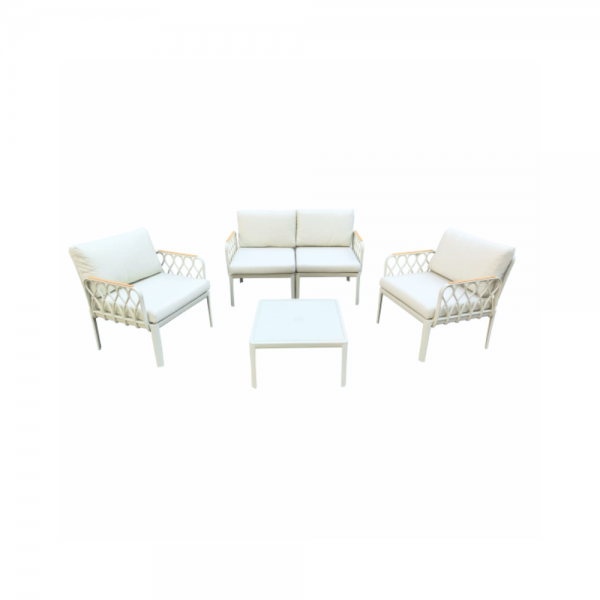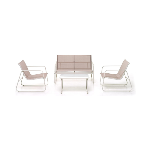 - Gloupie Salotto Da Giardino Esterno Elon 4 Posti In Metallo E Textilene Verniciato A Polvere Epossidica Bianca