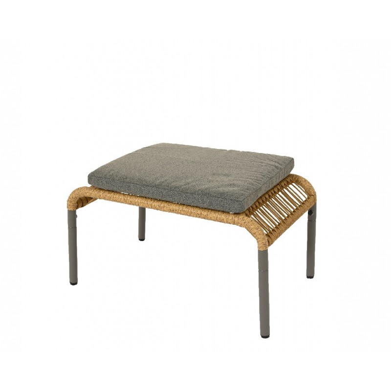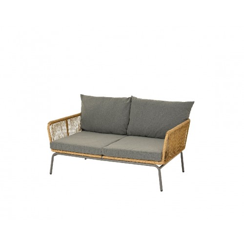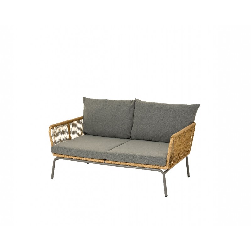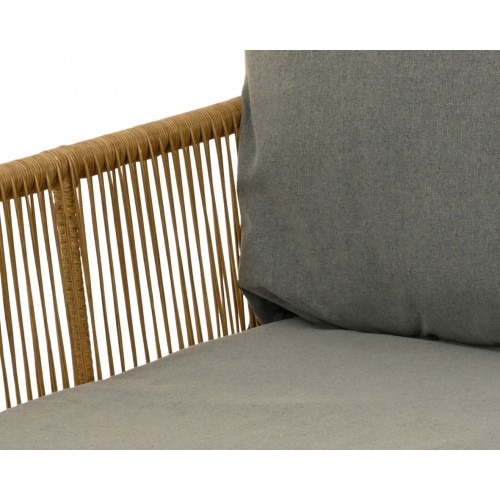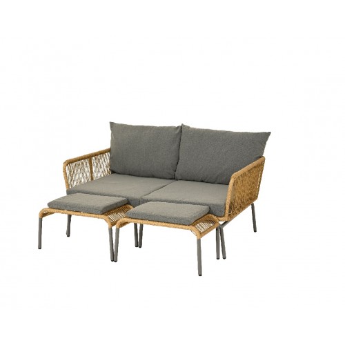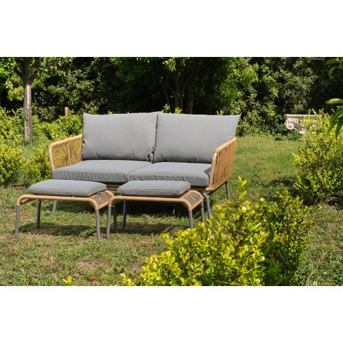KLULK Divano Da Esterno Santorini Con Poufs In Poli-Vimini, L 145 x H 61 cm, Gambe In Acciaio E Cuscini In Poliestere Grigio