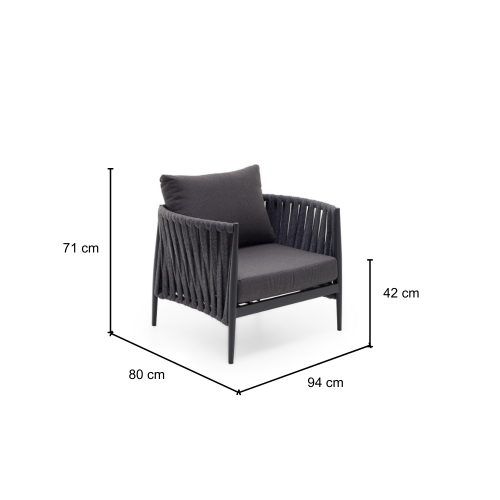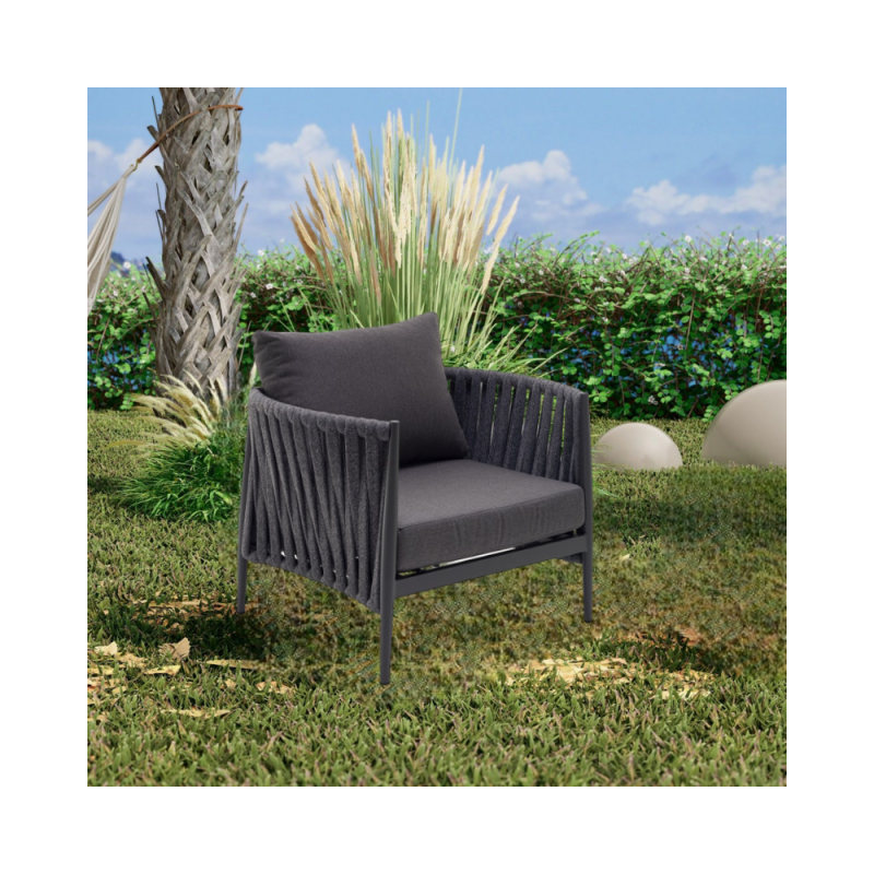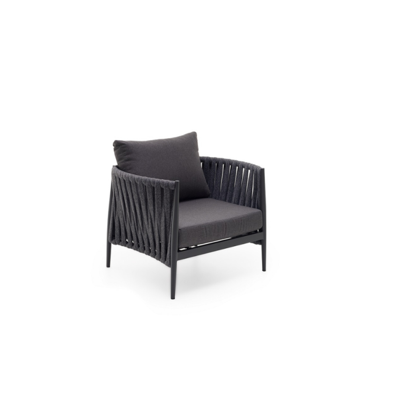 KLULK Poltrona Da Esterno Aruba In Alluminio Verniciato A Polvere Antracite Con Intreccio In Corde L 94 x P 80 x H 71 Cm