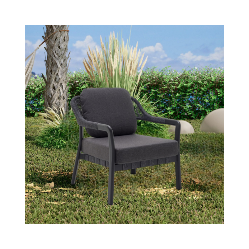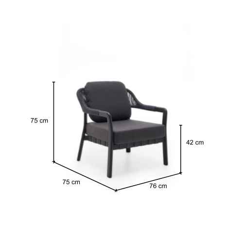 - KLULK Poltrona Da Esterno Martinica In Alluminio Verniciato A Polvere Antracite Con Intreccio In Corde L 76 x P 75 x H 75 Cm