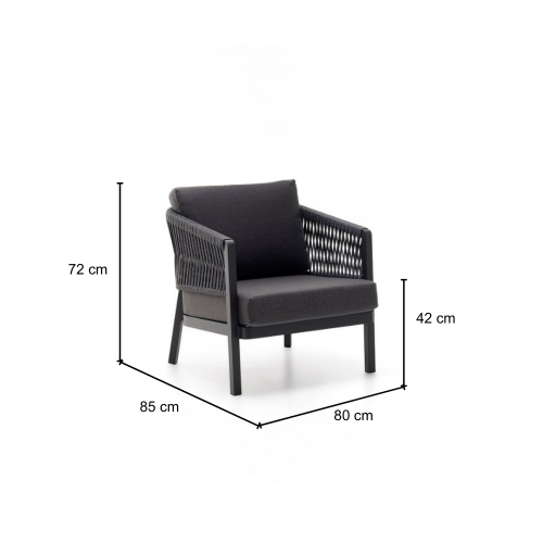 KLULK Poltrona Da Esterno Barbados In Alluminio Verniciato A Polvere Antracite Con Intreccio In Corde L 80 x P 85 x H 72 Cm