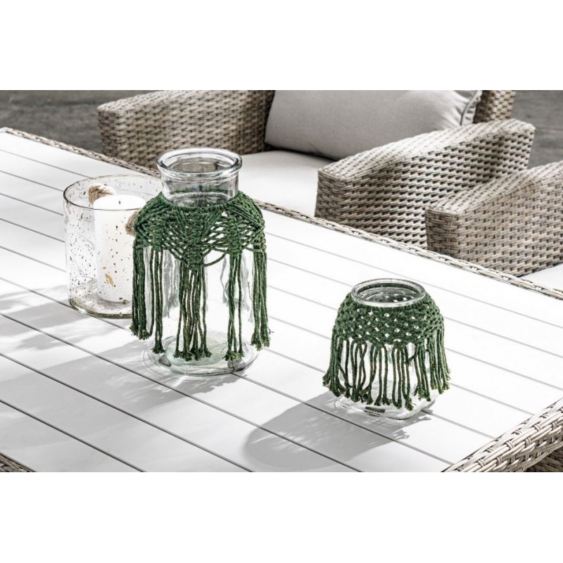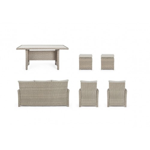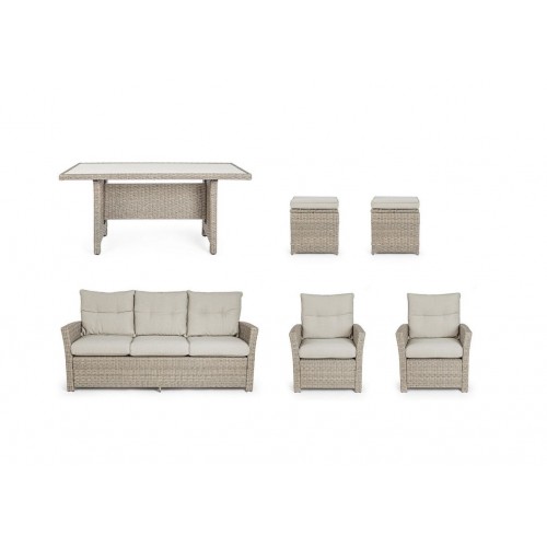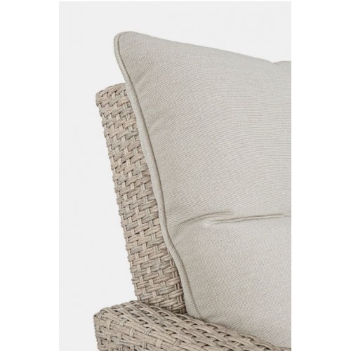 Lasciati avvolgere dal comfort dei morbidi cuscini in polipropilene beige, sfoderabili e lavabili per una facile manutenzione. La struttura in alluminio verniciata a polvere garantisce robustezza e resistenza alle intemperie, mentre l'intreccio in fibra sintetica dona un tocco di eleganza e raffinatezza.
