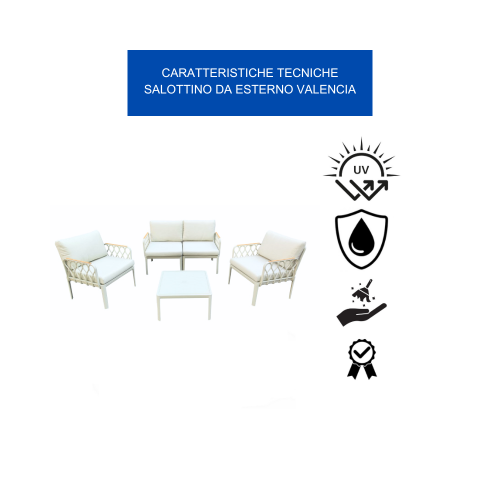 Il Salottino Valencia Non è Solo Un Semplice Complemento D'Arredo, Ma Un Vero E Proprio Camaleonte Dell'Outdoor. Grazie Alla Sua Struttura Modulare, Potrete Sbizzarrirvi Creando Diverse Configurazioni Per Adattarlo Perfettamente Al Vostro Spazio Esterno, Che Sia Un Ampio Terrazzo, Un Accogliente Patio O Un Angolo Suggestivo Del Giardino. Divano A Due Posti, Divano A Tre Posti, Chaise Longue, Oppure Un'Isola Relax Con Pouf Centrali