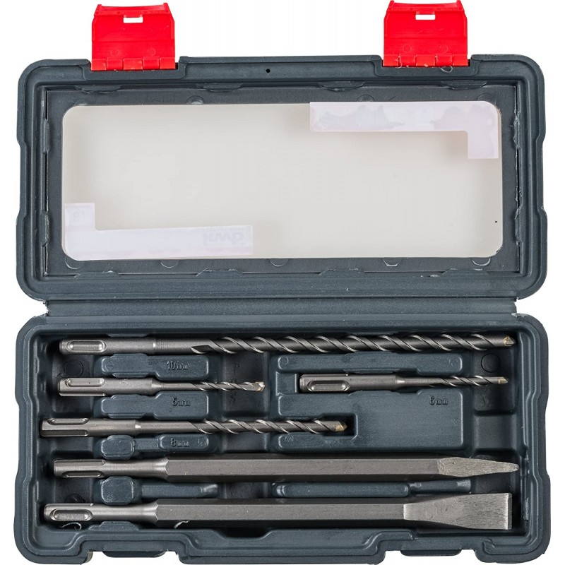 cassetta con 4 trapani e 2 scalpelli ottimizzati da vibrazione con albero sds plus per tutti i comuni trapani a martello e perforazioni
