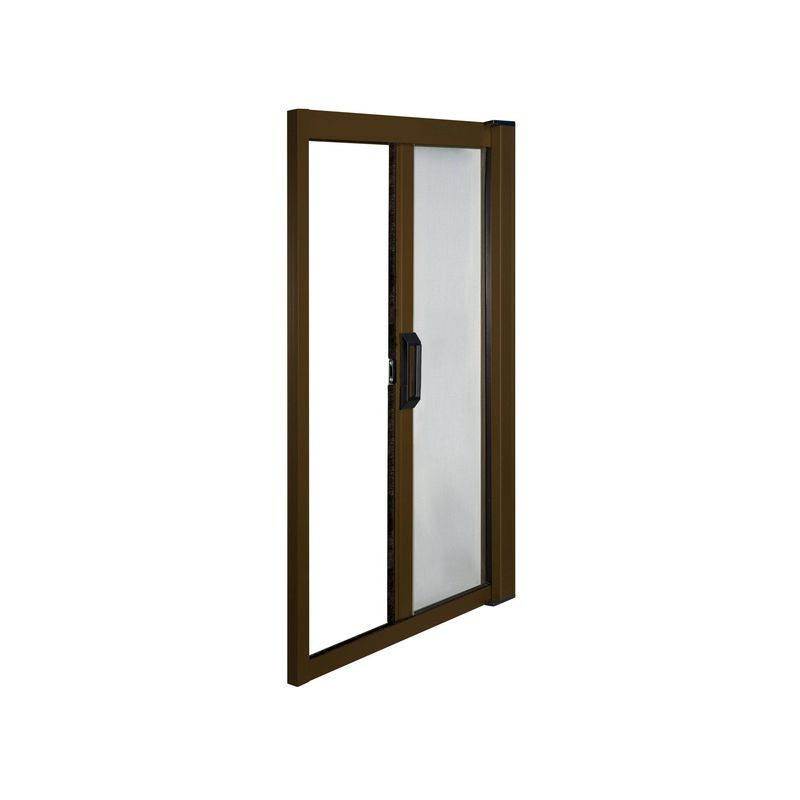 Zanzariera con profilo in alluminio laccato, rete in fibra di vetro.