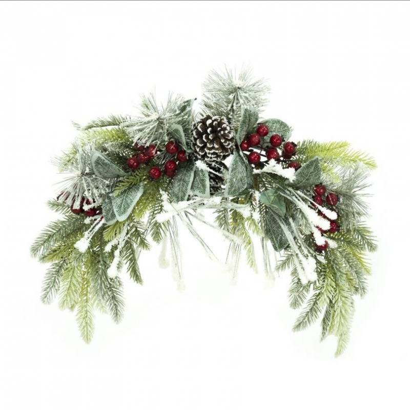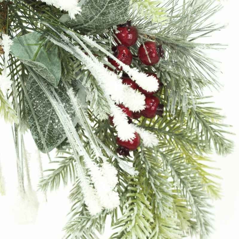 Ghirlanda innevato con pigne e bacche - Dimensioni 70 cm