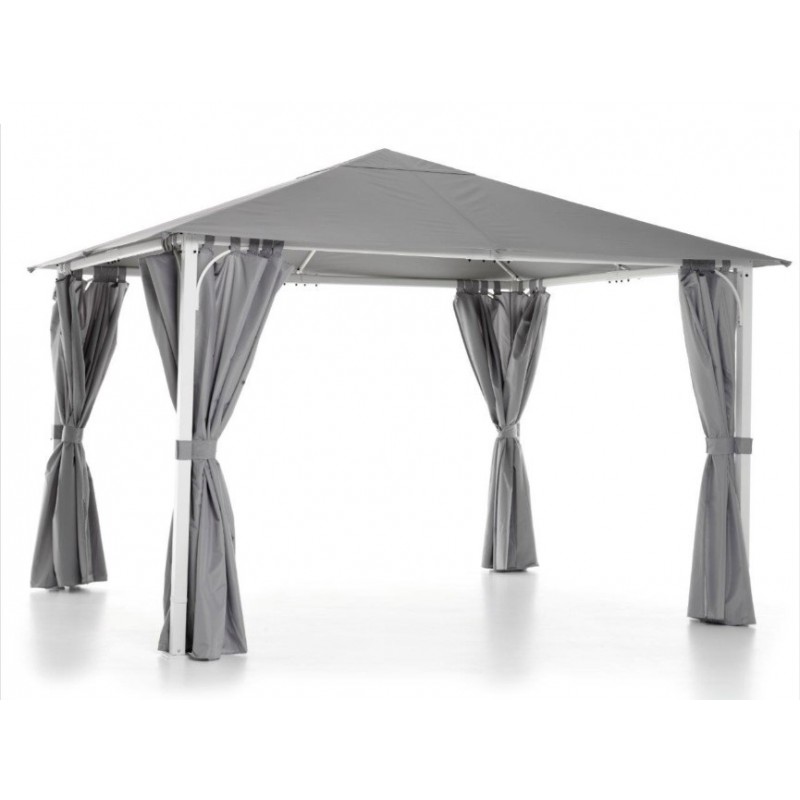 Gazebo Fuenti In Ferro 3 X 3,6 MT di colore Bianco con Telo Grigio