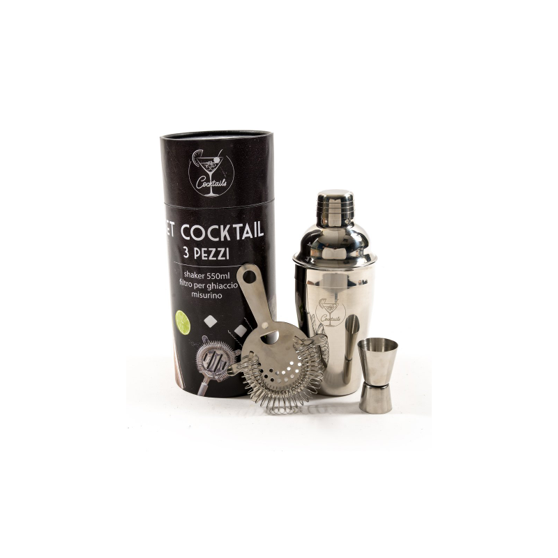 Set Cocktail 3 Pezzi Con Shaker 550 ml, Filtro Per Ghiaccio e Misurino