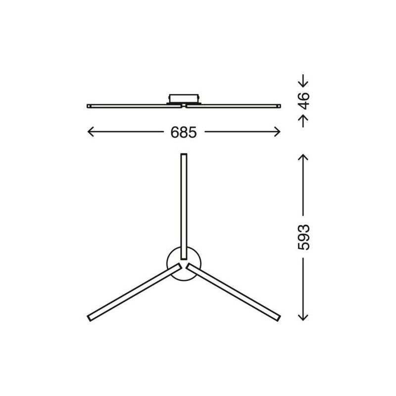 Moderna plafoniera a LED, realizzata in metallo e plastica, attira l’attenzione grazie al suo design elegante e dalle linee attuali. Si compone di 3 barre LED, la luce è distribuita in maniera ottimale, ogni barra ha una potenza di 5 WATT, una potenza luminosa totale di 1.500 lumen e una temperatura di colore di 3.000 K. I LED hanno una durata media di 20.000 ore totali. Dimensioni del prodotto: 685x593x46mm.