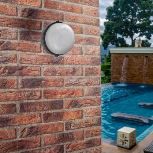 - GLOUPIE Plafoniera Da Esterno Tonda A Parete Livigno, IP44 60 W, D. 19 x H 9,2 Cm, Corpo In Alluminio Nero E Calotta In Vetro