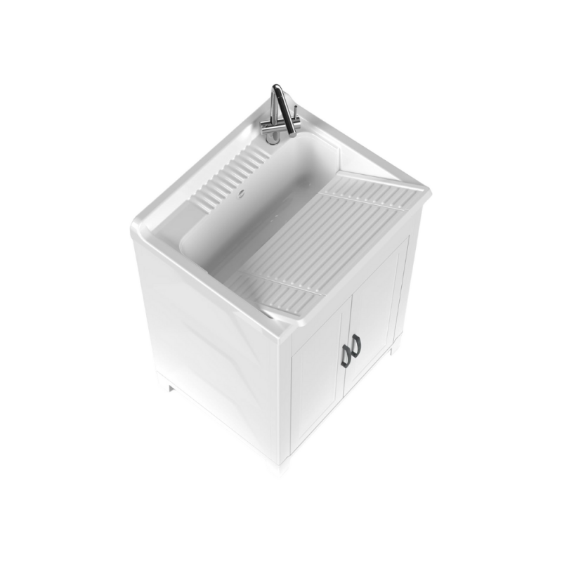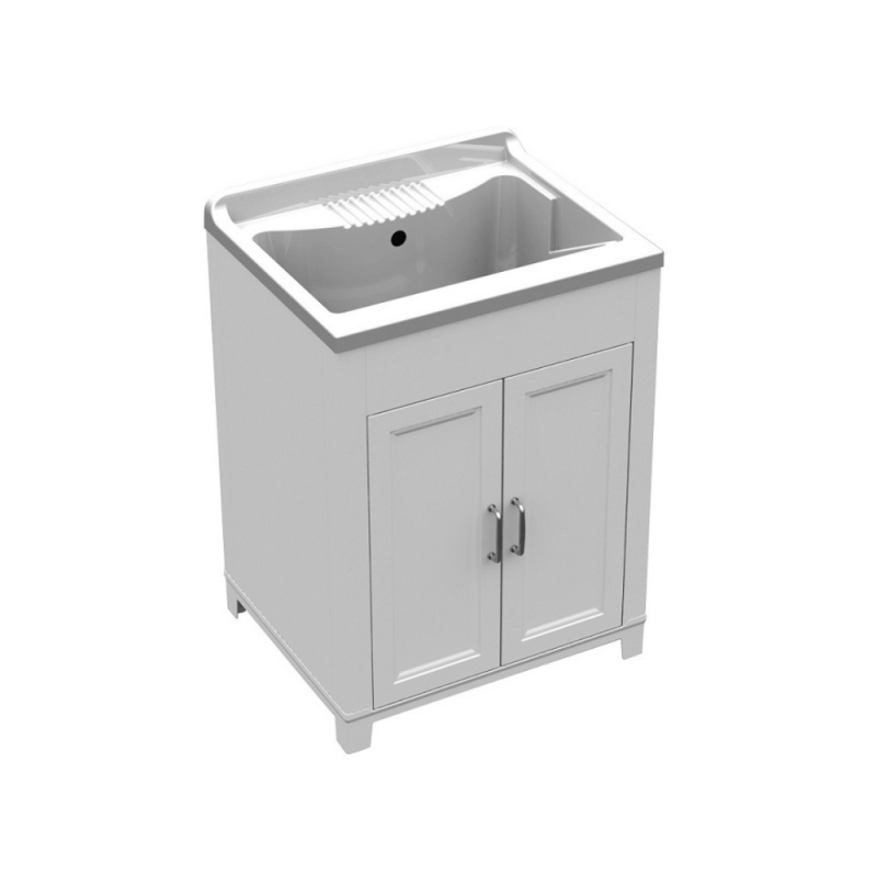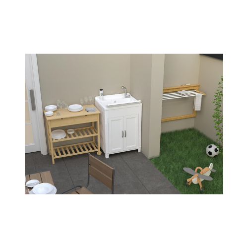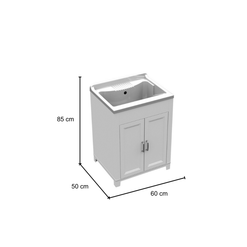 - GLOUPIE Mobile Lavatoio Wash Con 2 Ante Con Vasca, L 60 x P 50 x H 85 cm, Completo Di Asse Lava Panni E Kit Di Scarico