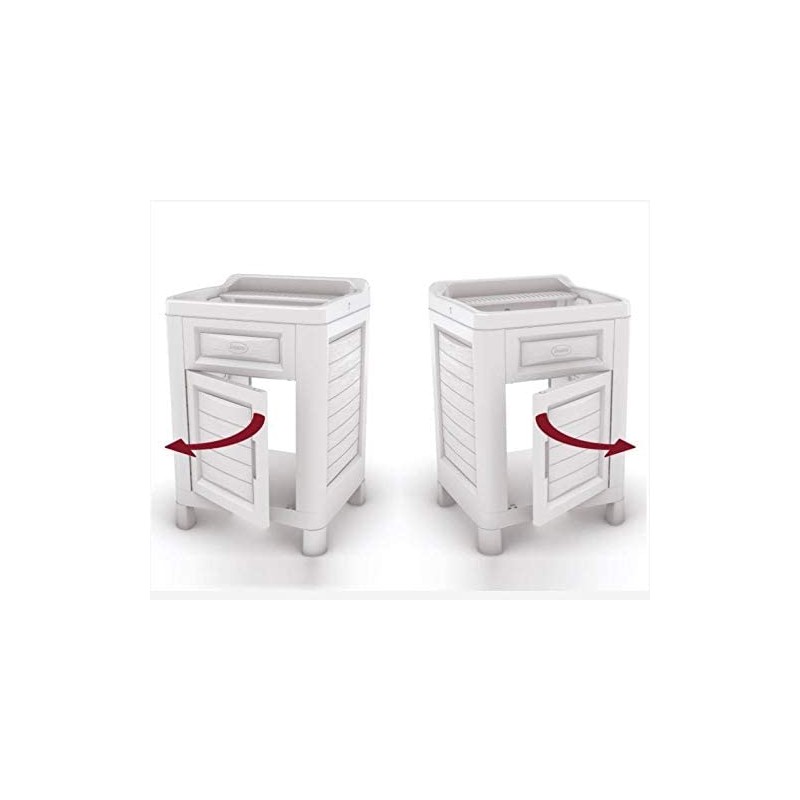 Piano regolabile e sportello frontale posizionabile con apertura a dx o sx permettendo così l'inserimento in qualsiasi angolo della casa.