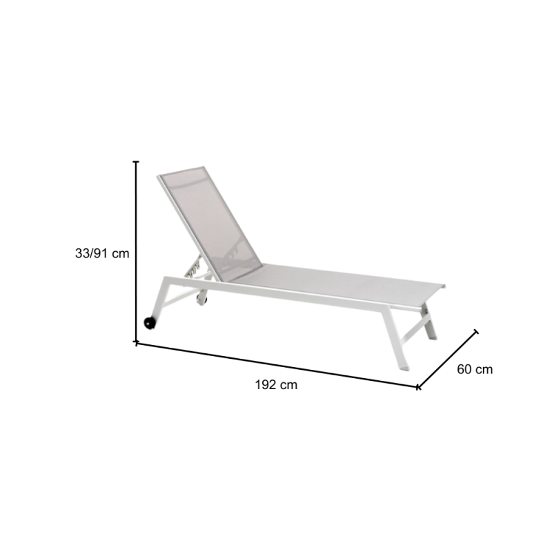 [Adattabilita' super]: Alamos è perfetto per persone di tutte le altezze, grazie ai suoi 192 cm di lunghezza, 60 cm di profondità e un'altezza che varia a seconda della rialzatura dello schienale da 33 a 91 cm. Potrai finalmente distenderti e goderti il sole comodamente. Il design elegante e moderno del lettino, con le sue linee chic e il color bianco, si adatta perfettamente a qualsiasi stile di arredamento esterno, donando un tocco di classe e raffinatezza al tuo giardino, terrazzo o patio