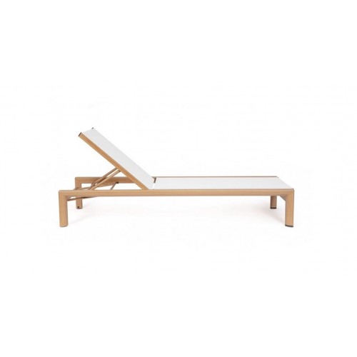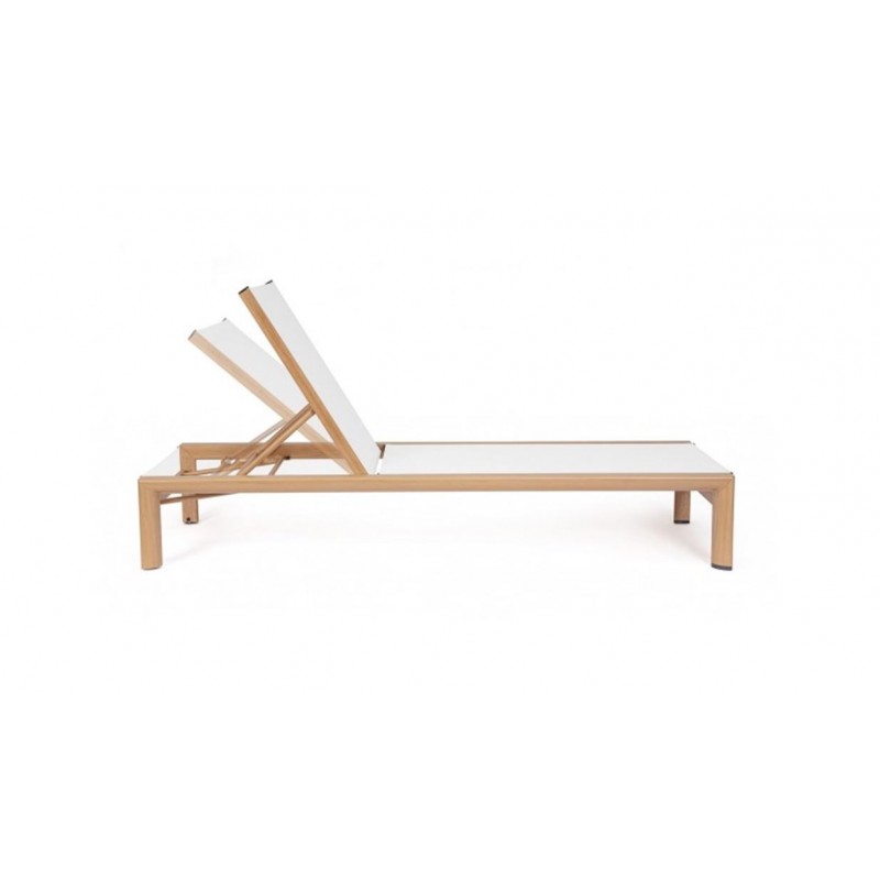 - Lettino Reclinabile In 4 Posizioni Linea Skipper Con Struttura In Alluminio Verniciato Effetto Legno E Telo In Textilene Bianco