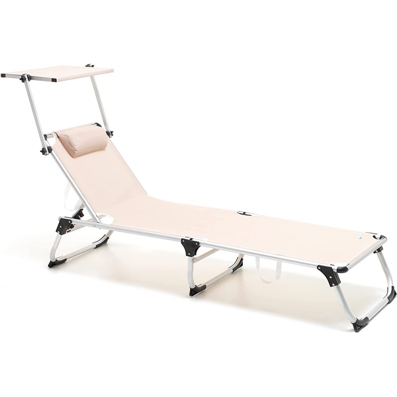 Lettino mackay ecru pieghevole in alluminio con cuscino regolabile 5 posizioni