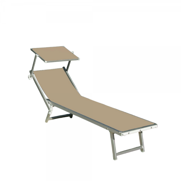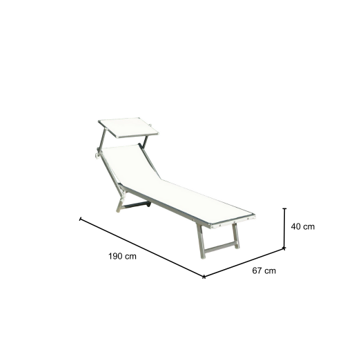 GLOUPIE Lettino Prendisole Da Giardino Kentucky In Alluminio Verniciato A Polvere Epossidica Resistente Ai Raggi UV E Alle Intemperie Con Parasole Orientabile Per Una Regolazione Efficace Contro I Raggi Solari, Regolabile In 2 Posizioni, Lunghezza 186 Cm x Profondità 67 Cm x Altezza 40 Cm (, Seduta Confortevole In Textilene Morbido E Anti Ingiallimento 750 G/Mq Per Arredo Esterno