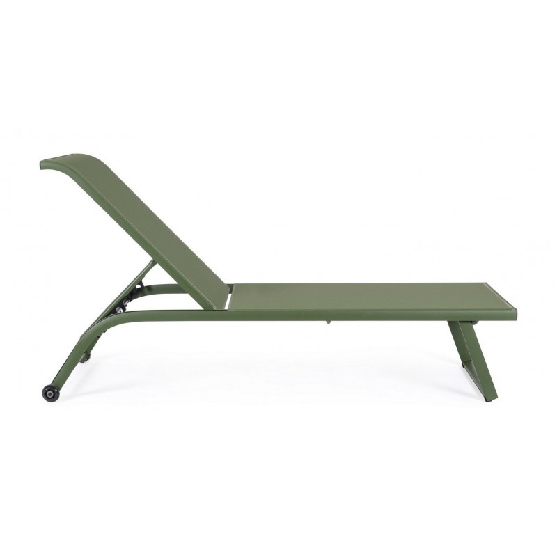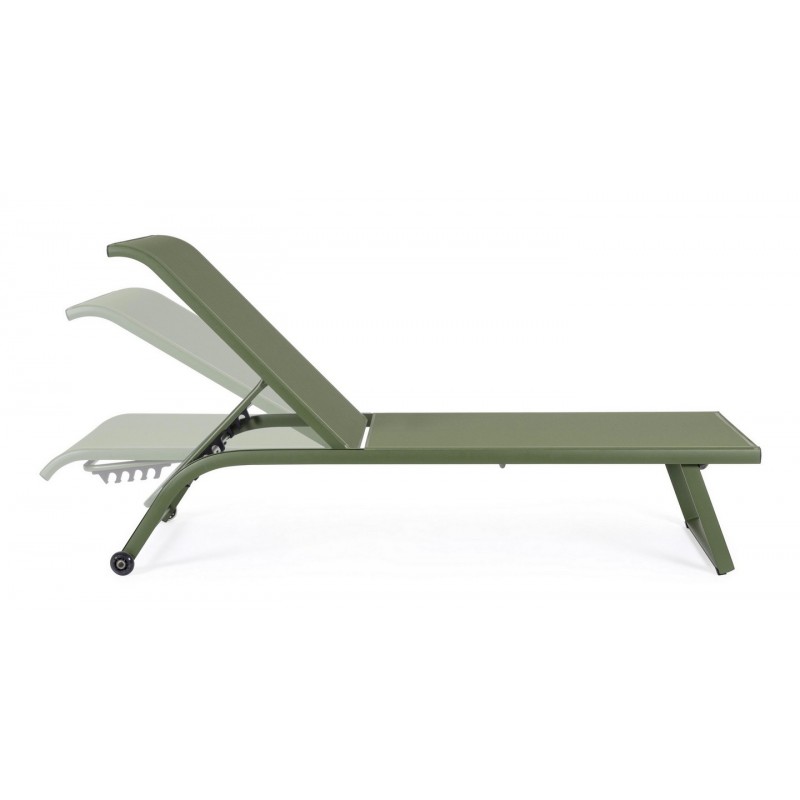 Lettino con Ruote Linea Taylor in Alluminio e Textilene Herb con Schienale Reclinabile in 4 Posizioni