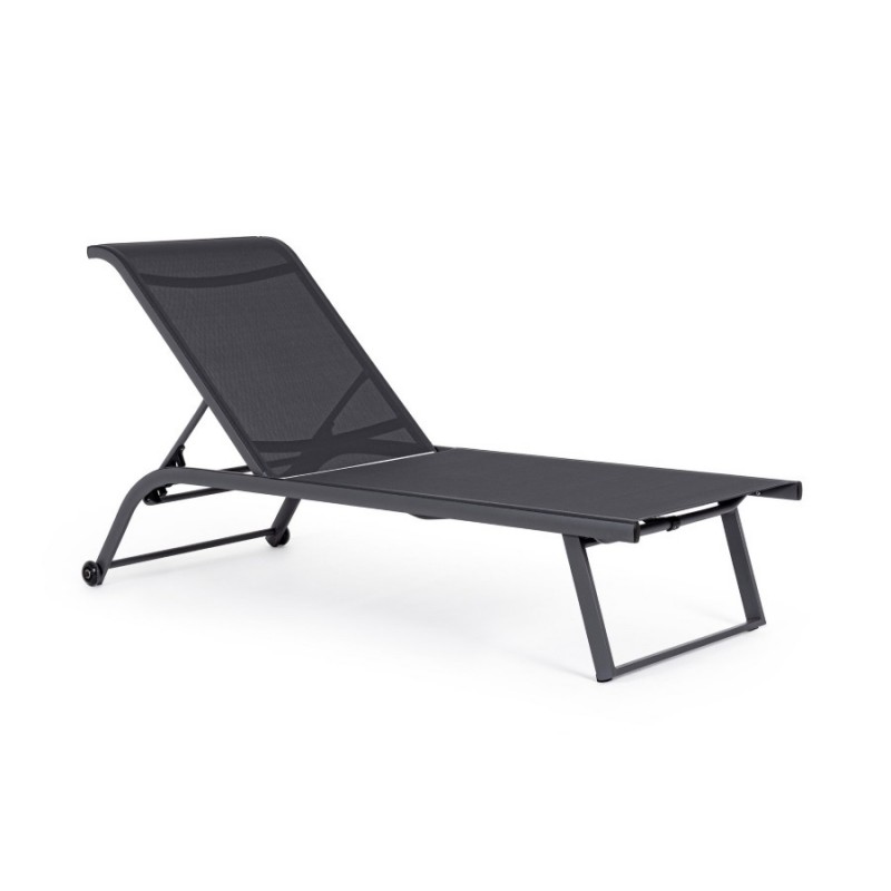 - Lettino con Ruote Linea Taylor in Alluminio e Textilene Antracite con Schienale Reclinabile in 4 Posizioni