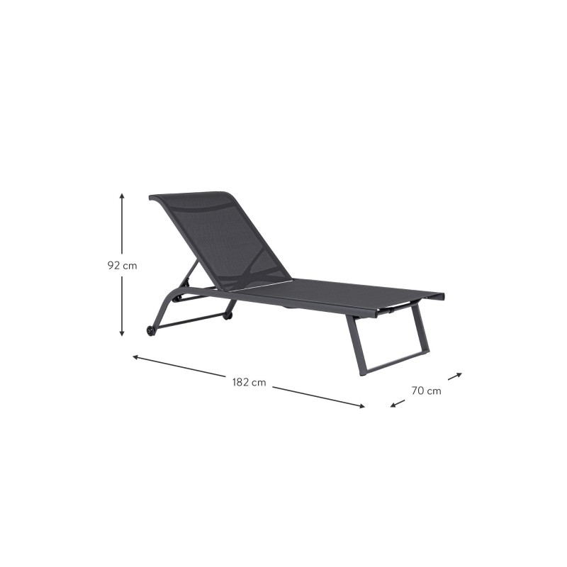 Lettino con Ruote Linea Taylor in Alluminio e Textilene Antracite con Schienale Reclinabile in 4 Posizioni